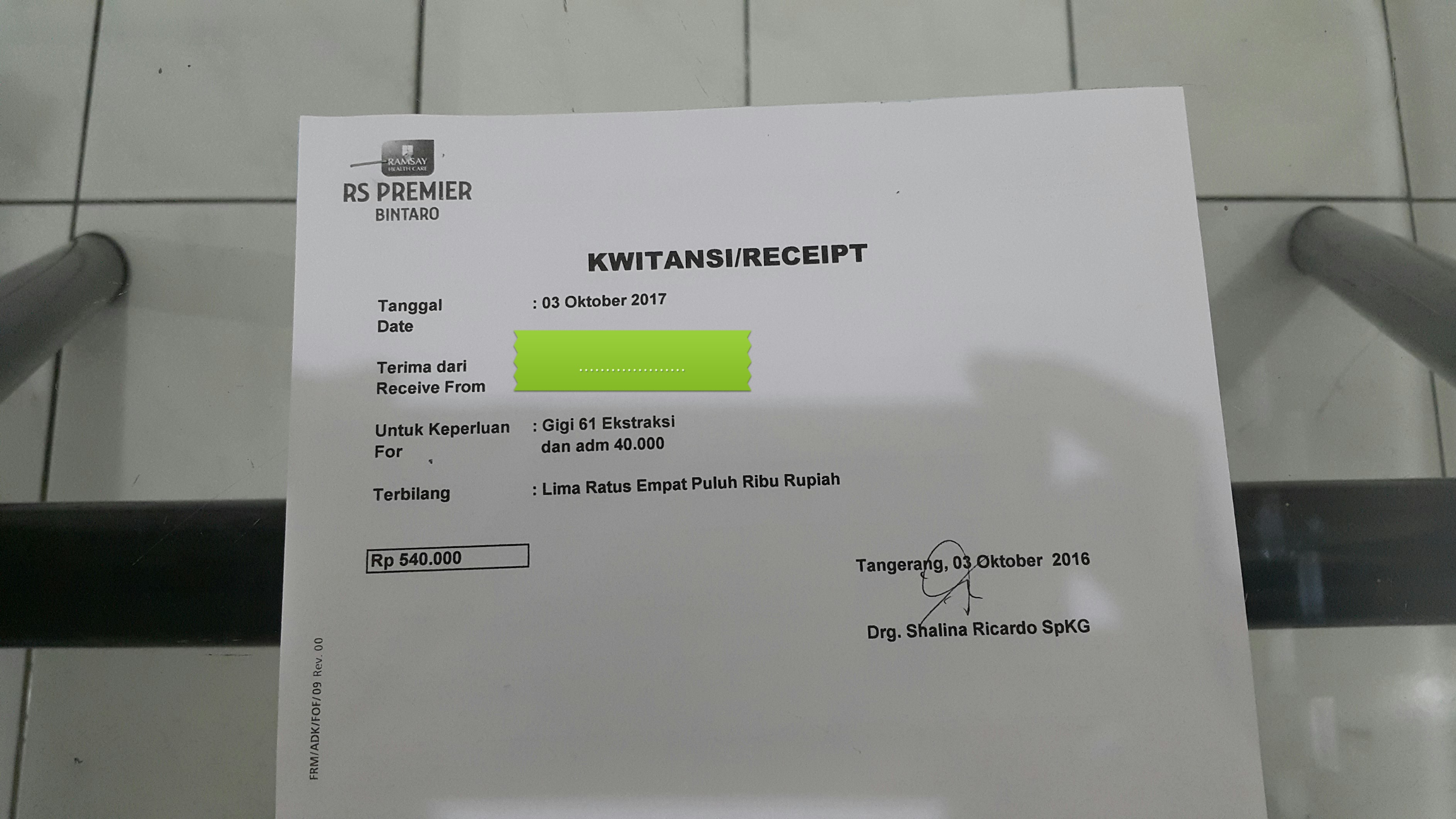 Berikut adalah contoh klaim dari Manfaat Rawat Jalan dan Rawat Gigi Darurat dari nasabah saya usia 2 tahun, jatuh ketika bermain menyebabkan giginya patah dan memerlukan tindakan pencabutan.
