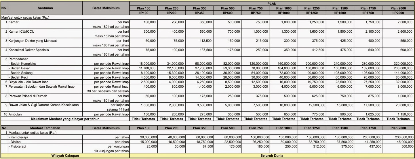 - Tersedia dalam 10 pilihan plan sesuai kebutuhan dan kemampuan nasabah. Plan 100, 200, 350, 500, 750, 1000, 1250, 1500, dan 2000